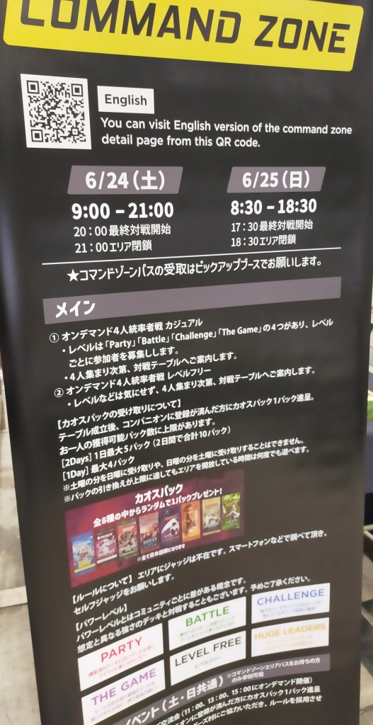 EDHで遊べるコマンダーゾーンに行くが、事前にパスを購入していないと参加できないと知る。