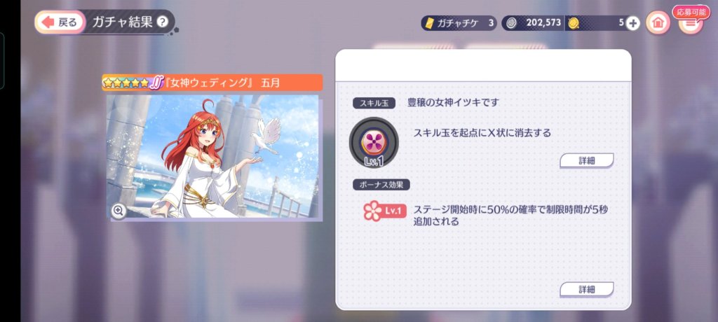 ボーナス効果の5秒アップは嬉しいが、レベル5で90%になるのは星5キャラと同じ。