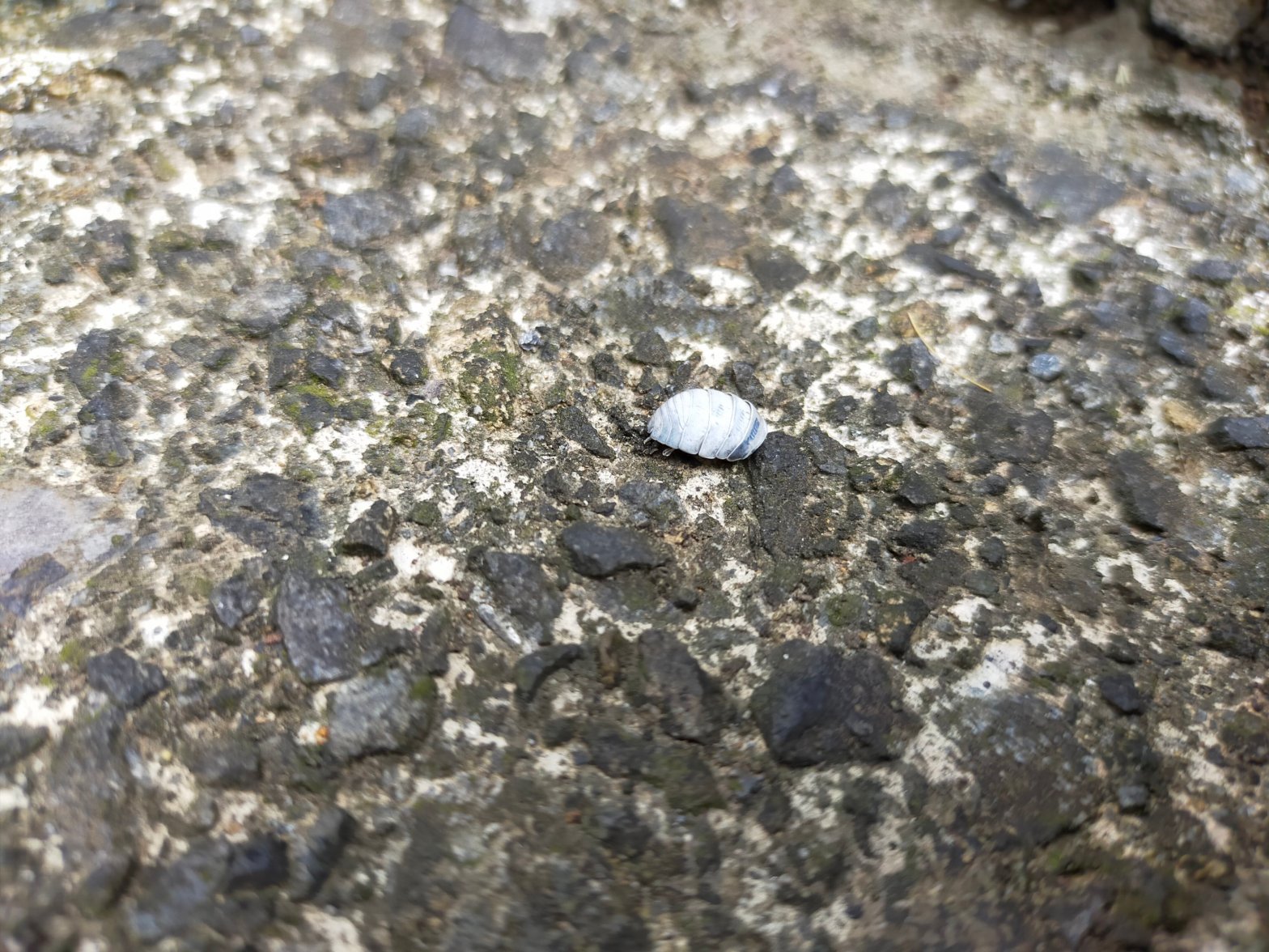 掃き掃除をしていた時に、白い石のようなものを見つけたのだが、よく見たらダンゴムシだった。
