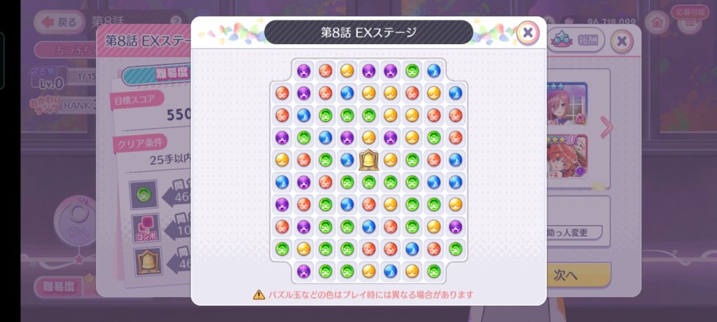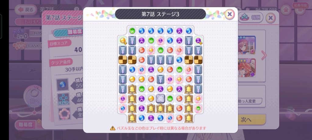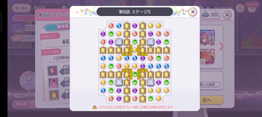 赤85個、9コンボはともかく、ベルを114回鳴らすクリア条件が地味にキツイ。