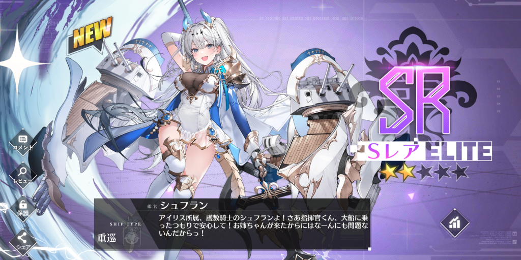 初めた当初はゲーム内資金が足りなくて建造ができず、ネプテューヌコラボのパープルハートだけ持っていない。とても悔しい。