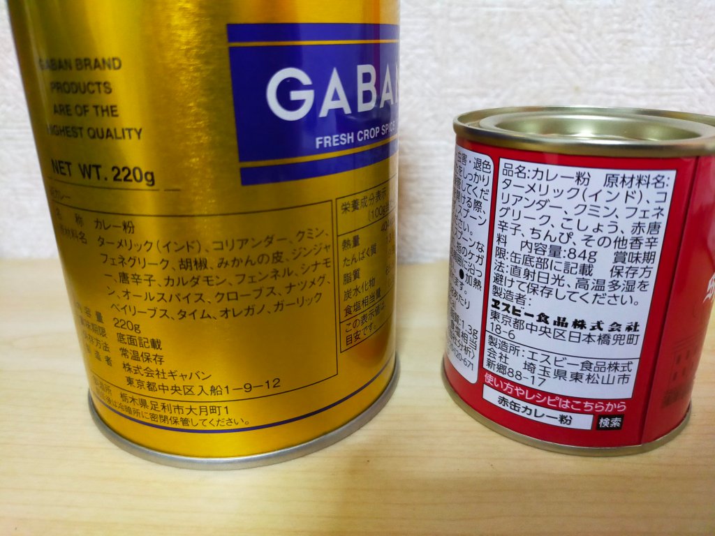 現在使っているS&Bのカレー粉(2缶目)が無くなりそうなので、GABANのカレー粉を買う。