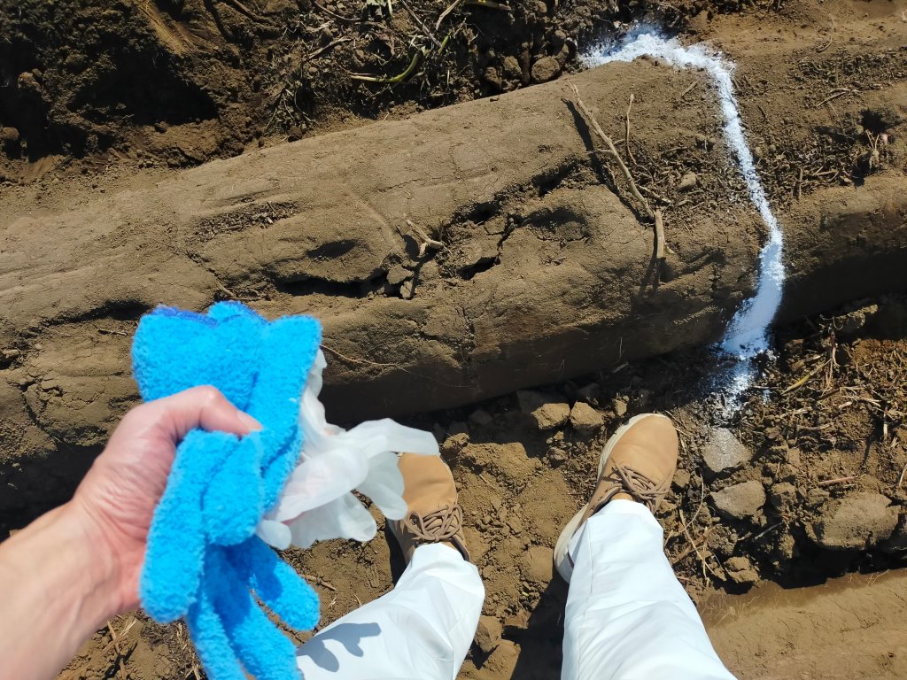 足を伸ばしたり、立ち位置を逆にしたり、写真を撮ったりしつつ、約30分で6株分の範囲を掘り終わる。