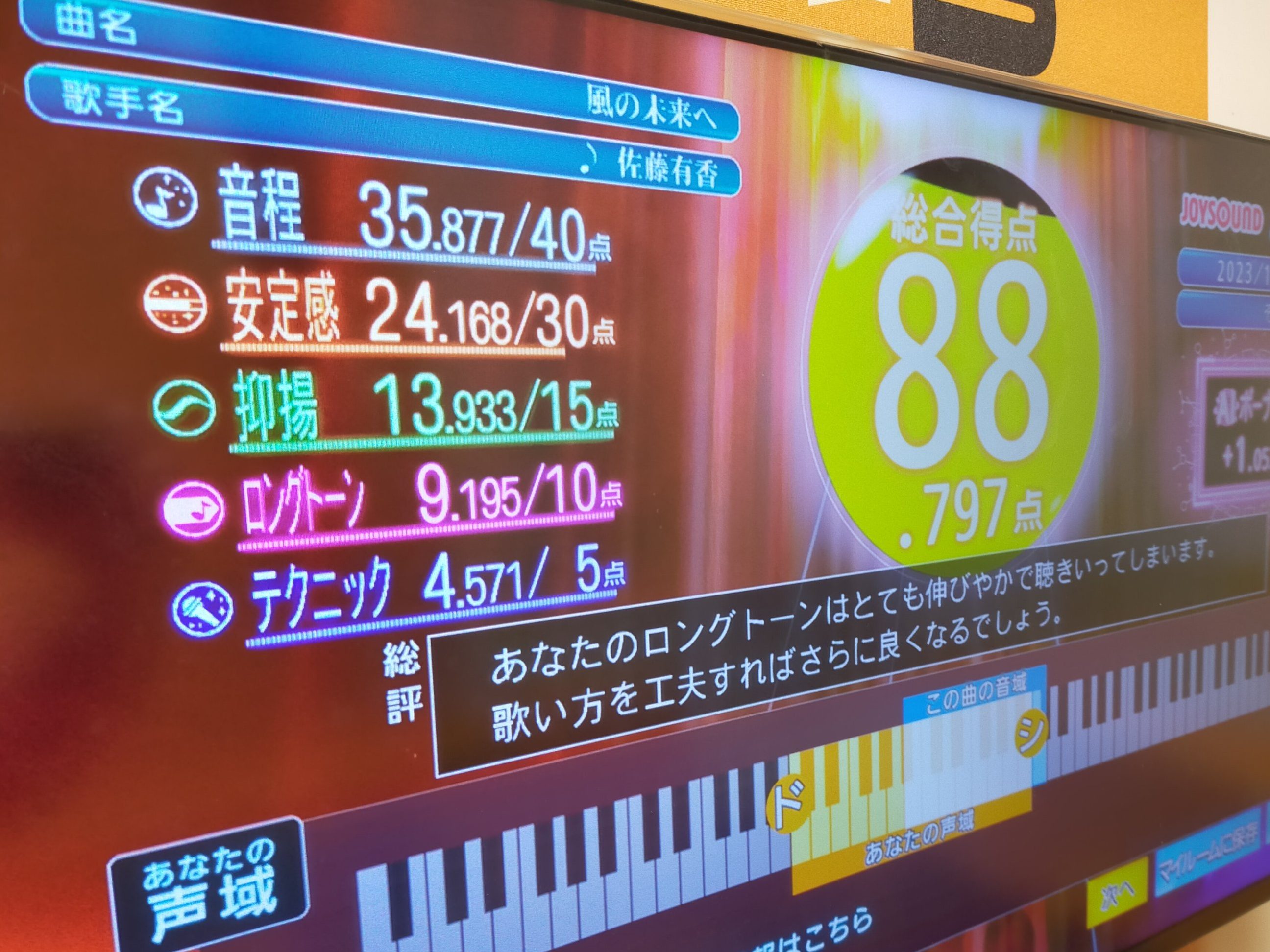 女性ボーカルの歌が多く、まずは低音で歌ってみる。