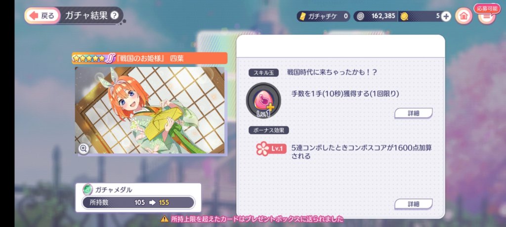 覚醒後のイラストの方が好きだったのでとりあえず強化アイテムは二乃に使った。
