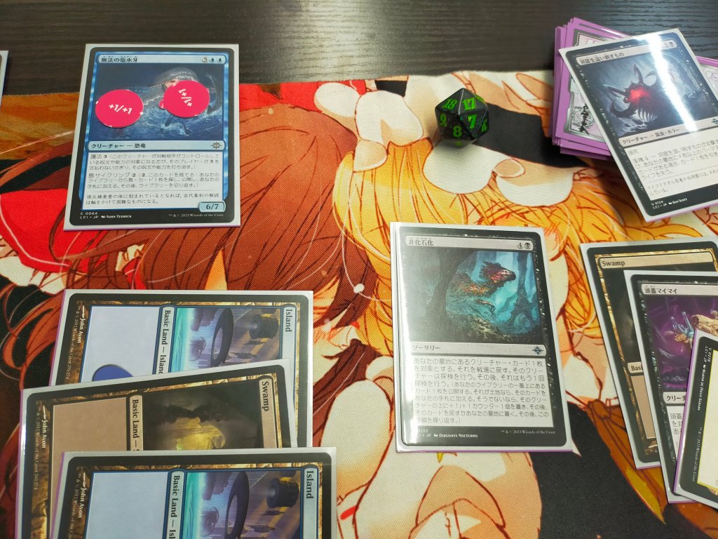 長丁場になり、生ける屍内臓デーモンが手札にあったのだが、8枚目の土地が出ず負ける。