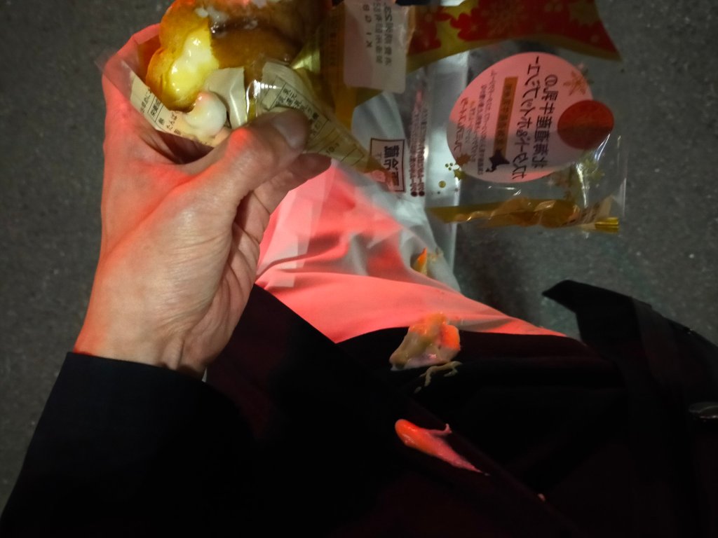 口周りのクリームも大概だったが、包装してある袋、ズボン、上着、コート、と見事に色々なところへ飛び散った。