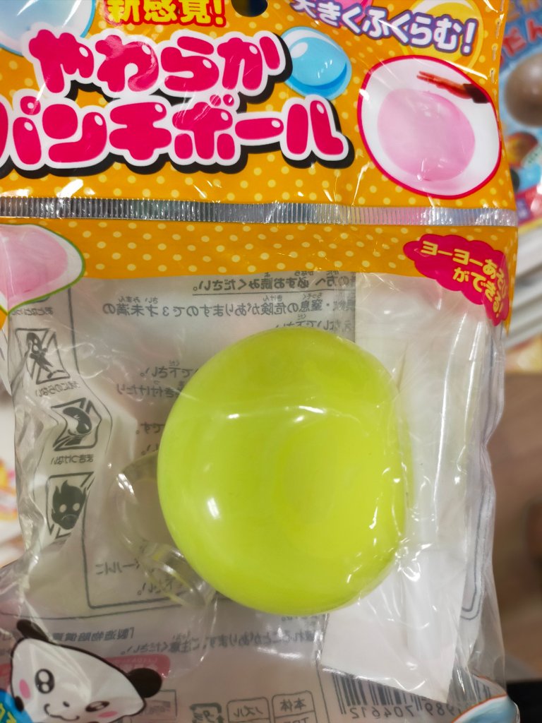 ※ガチャポンの玉くらいのゴム球とリストバンドをゴム紐で繋げたおもちゃ。