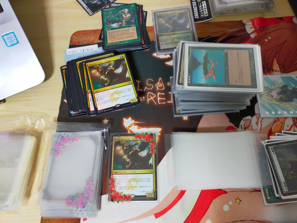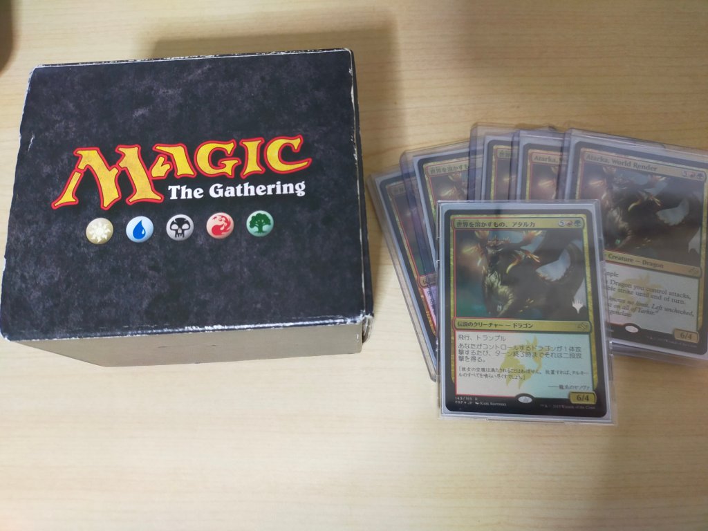 このデッキのスリーブとして使ったアタルカは状態の良いものを集めたが、カードの色ムラがあるため、公式大会などでは使えない。