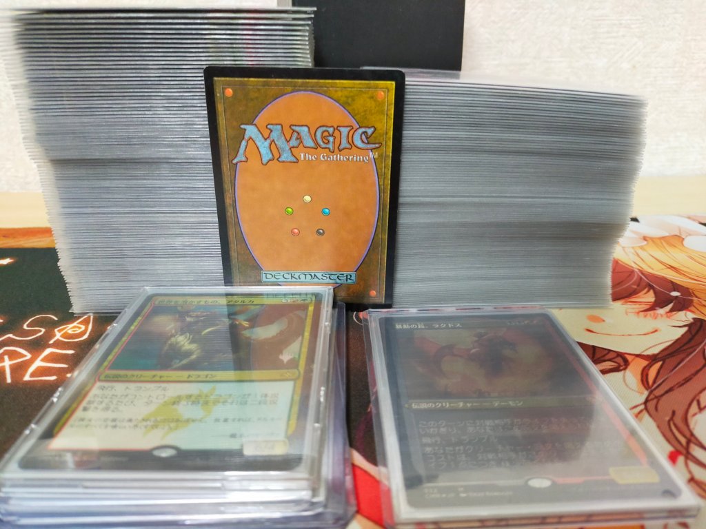 多言語や、C17やフォーゴトン・レルム探訪統率者デッキなどの再録版が入っていないかの確認も兼ねている(そういえば、スターター統率者デッキのアタルカ持ってない)。