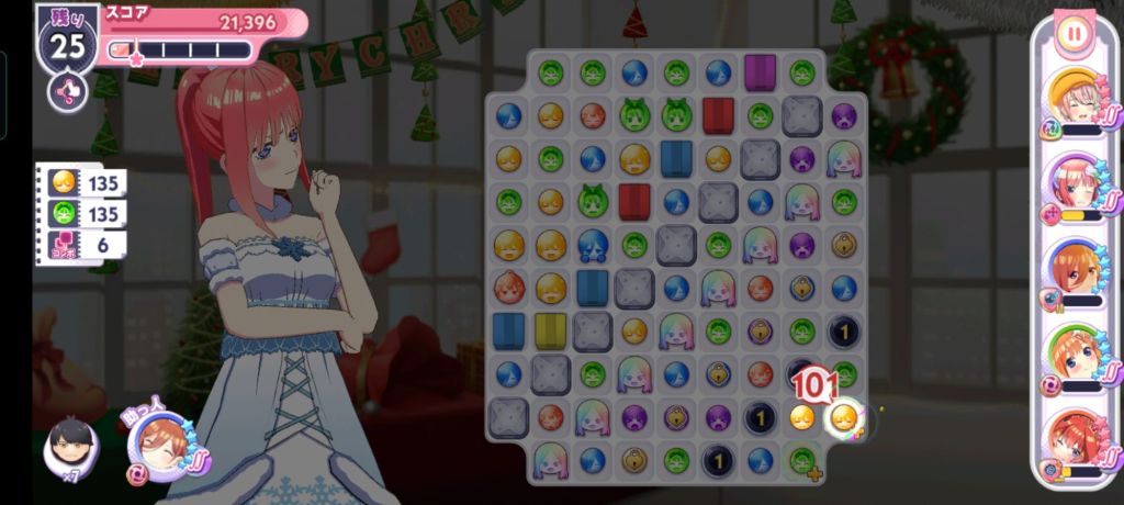 クリア条件は、20手以内、黄135個、緑135個、6コンボ。