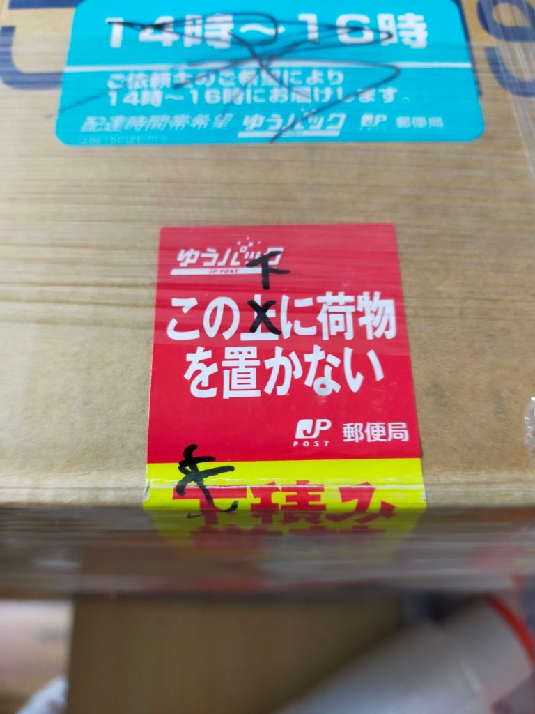 そしてダンボールを再利用しているので、紛らわしいシールは消しておく。