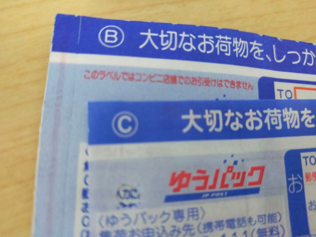 郵便局で発払い伝票をもらってきたのだが、コンビニでは使えなかった。