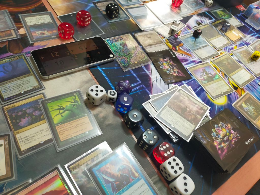 カードショップに寄りお使いをし、友人宅へ早めに行き、ダンダーンデッキに欲しいカードを探し、4人集まってEDH開始(記事の冒頭へ)。