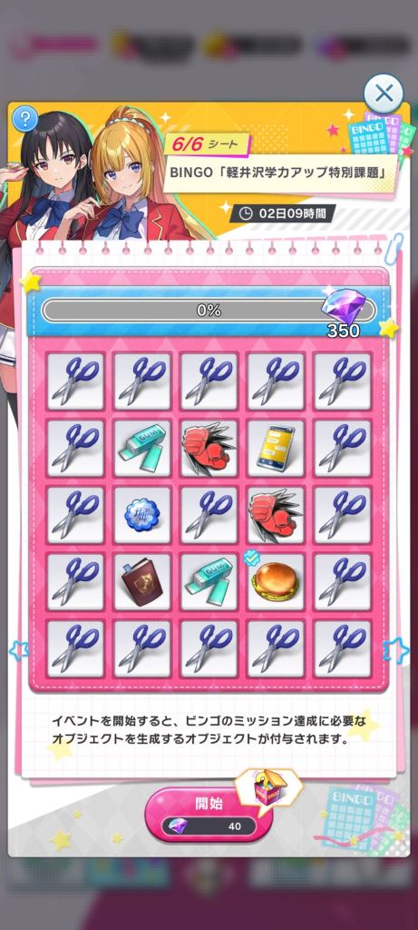 堀北、葛城、高円寺ばかり使うことになるので、他のキャラも使うようなビンゴマスにしてほしい。
