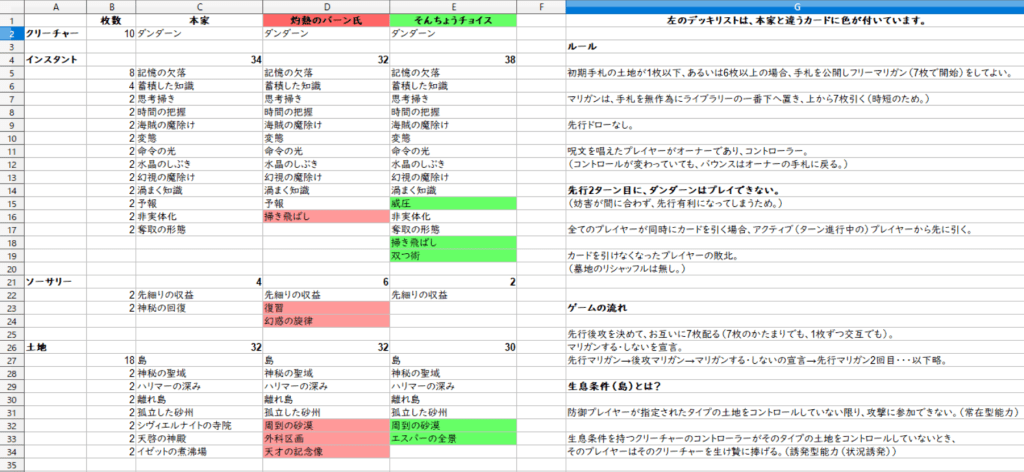本家、灼熱のバーン氏、私のデッキリストをまとめた。