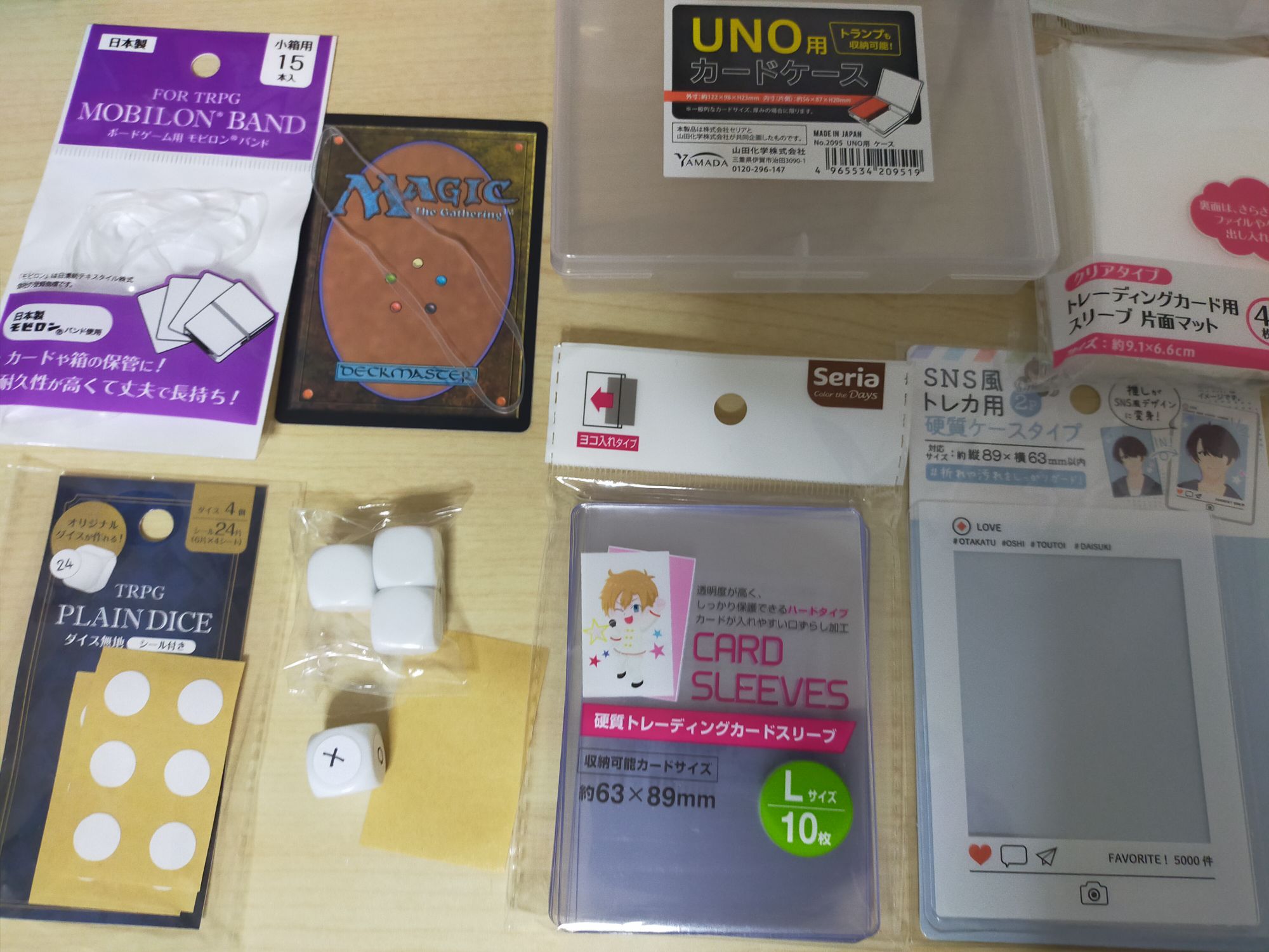 100円ショップ(セリア)のゲーム用サプライを使ってみた2(無地ダイス、ボードゲーム用バンド、硬質カードスリーブ、マットスリーブなど)。【ネタ画像】