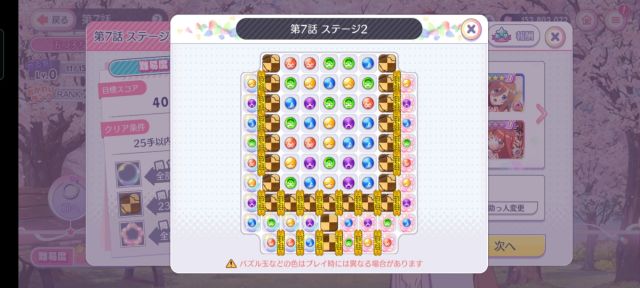 黄色は多めに落ちてくるので50個消去は普通に達成するし、ベル破壊50回と15コンボも意識すればクリアできる。