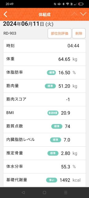 履歴から見ると下段にある肉体年齢が見えないが31歳だった。