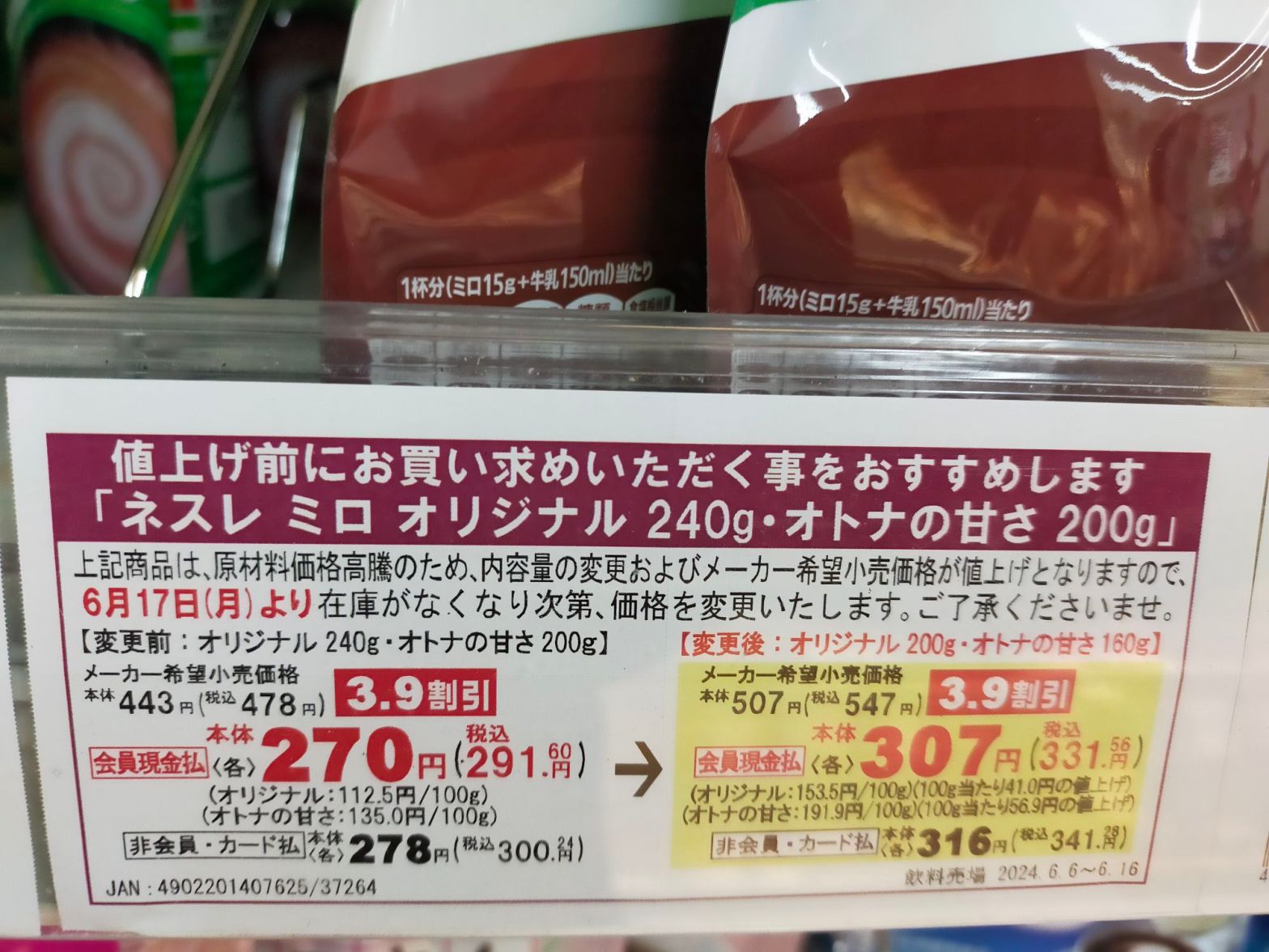 量が減って、価格も上がるというダブルパンチ(と言うのか?)