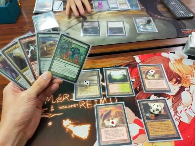 土地を2枚捨てて、モックス・ダイアモンド2つを出し、壌土からの生命で回収という美しい動き。