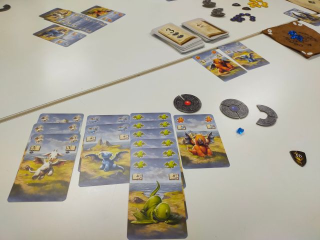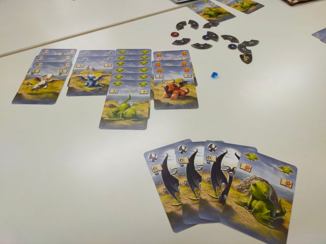 ただし、ゲーム中最初に4色のドラゴンを出したプレイヤーにはボーナスがある(右下にある盾のような形の16点)。