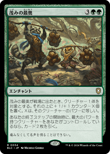 (2)(緑/青),(Q):パーマネント1つを対象とする。その上に置かれている各種類のカウンターの数を2倍にする。((Q)はアンタップ・シンボルである。)