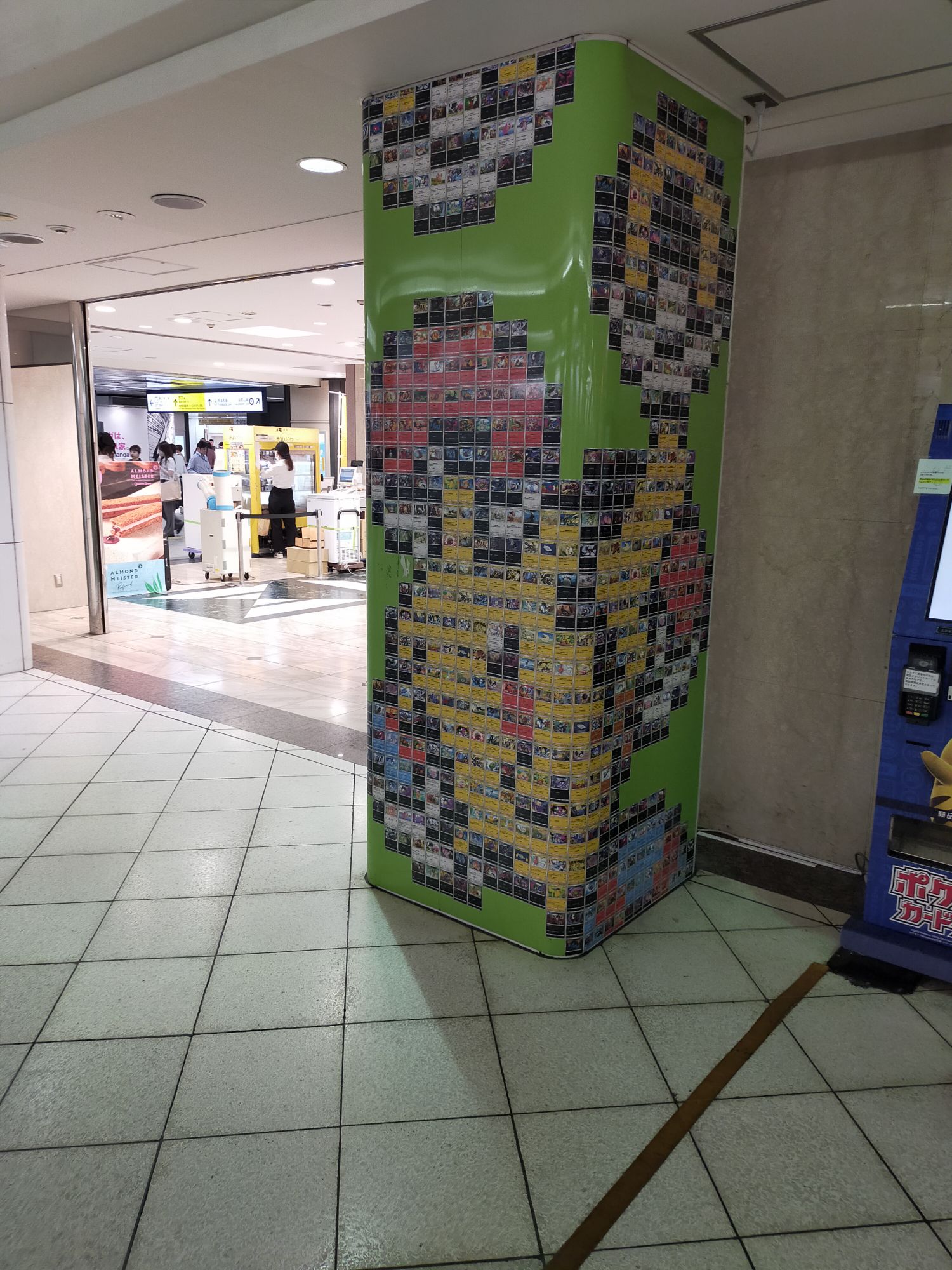 近づくと、ポケモンカードで作られていることがよく分かる。