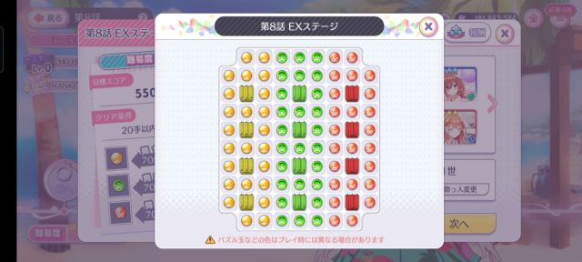 残り手数が足りるか不安だったが、二乃のパズル玉操作スキルのおかげでなんとかなった。