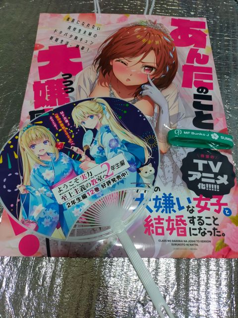 ガラポンで貰ったティッシュと冊子。冊子にはショートストーリーが4本ほど載っていた。知らない作品だったので読まない(ネタバレ回避の意味もある)。