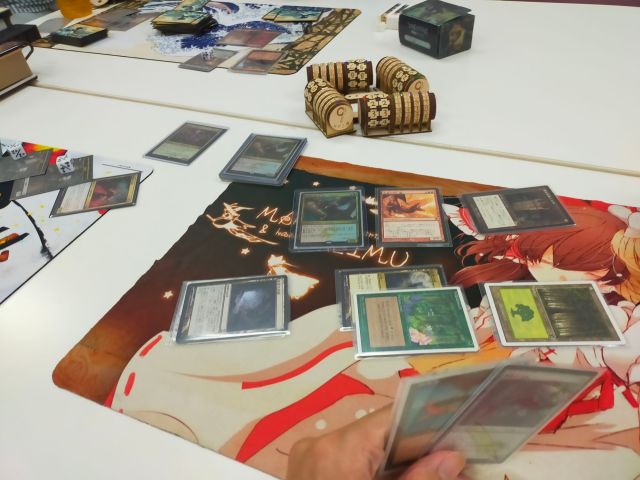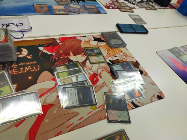 2卓の8人がプレイ中で、EDHプレイヤーが集まらず3人で対戦。