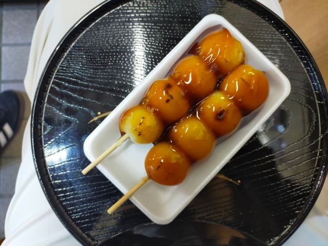 みたらし団子2本で200円。税込み。前から4粒だっけ?