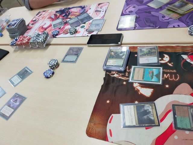 しばらくEDHや他の対戦を見ていたが、11人目が来たので撤退しようとしたところ、EDHに誘われた。