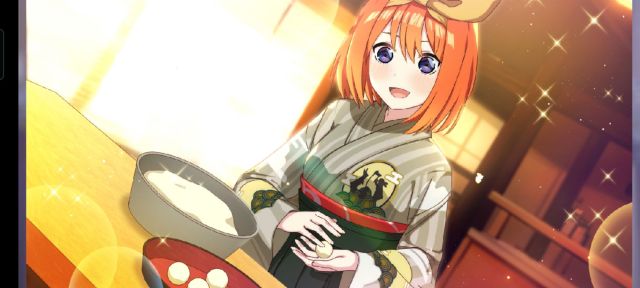 ガチャはダブりがなく、メダル555枚の確定チケットを含めて三玖以外の4人が来てくれた。