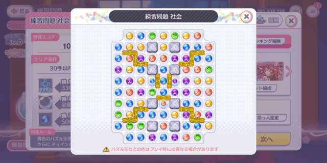 33チェインは色変換スキルがあれば楽だが、泡玉の中のパズル玉は変換されない。