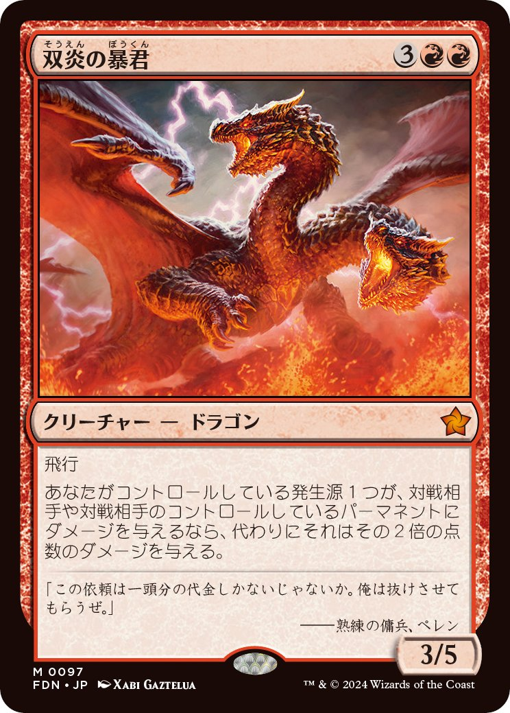 ダメージ2倍効果付きドラゴン「双炎の暴君」はEDH世界アタルカ、EDHオーシオンに採用確定。【MTG】【ファウンデーションズ】