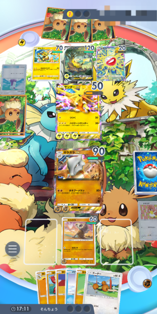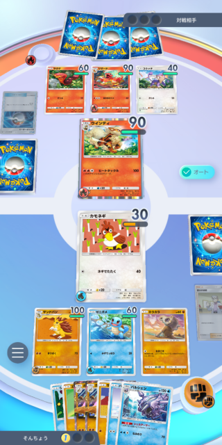水エネルギーが7個付いたフリーザーに、毎ターン80ダメージを食らってボコボコにされた。