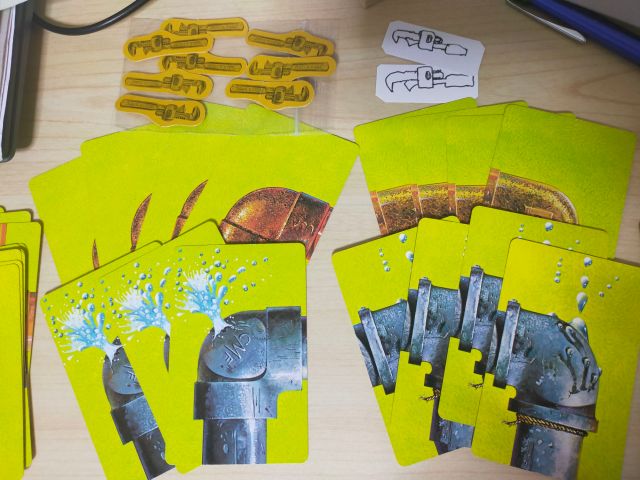 同じ形の水道管・カードを重ねる、あるいはレンチを使う(1人2個ずつ持っている)ことで修理もできる。
