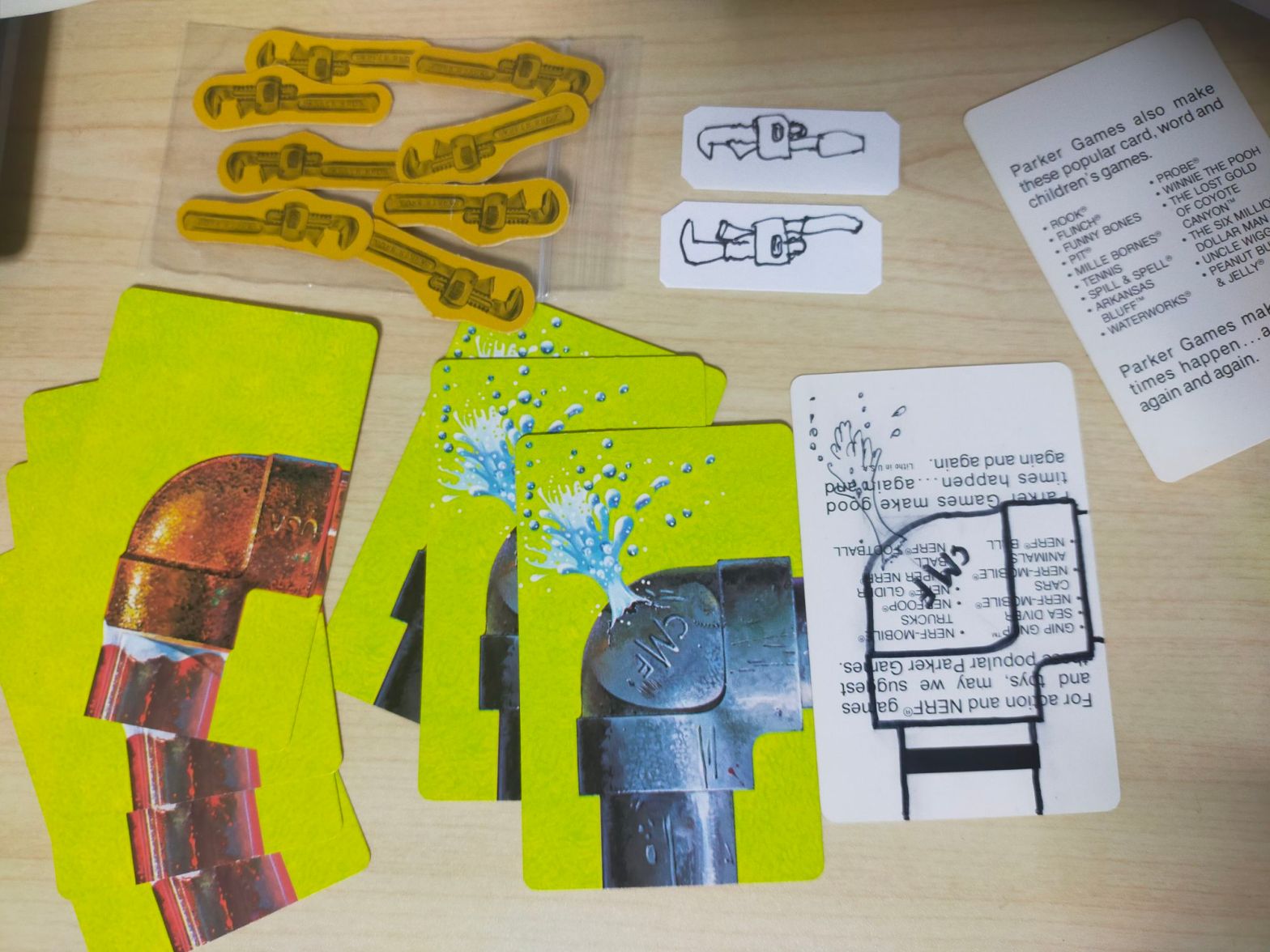 同じ形の水道管・カードを重ねる、あるいはレンチを使う(1人2個ずつ持っている)ことで修理もできる。