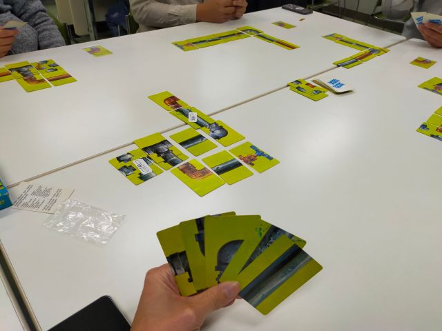 チラホラ空いていそうな人に声をかけ、ボードゲーム「WaterWorks」をやる。