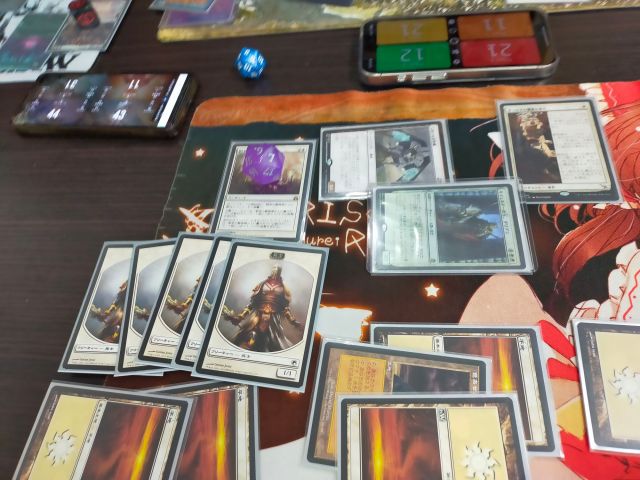 沈黙のオーラ、マナファクトを出し、1/1を3体出して終わる。