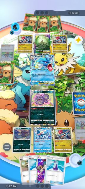 ミュウexとマタドガスを壁にするのだが、それぞれ「かけだし調査員」と「キョウ」で手札に戻せるため異様に時間稼ぎできる。