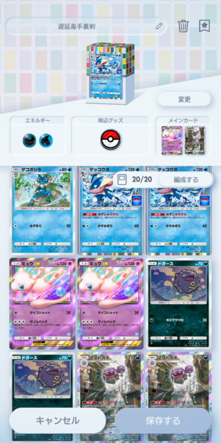 メインアカウントの方はミュウexも、ゲッコウガの進化前も1枚ずつしか無いので組めない。