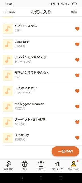 お気に入りの曲はハートマークが付いて分かりやすく、(おそらく)上限がない。
