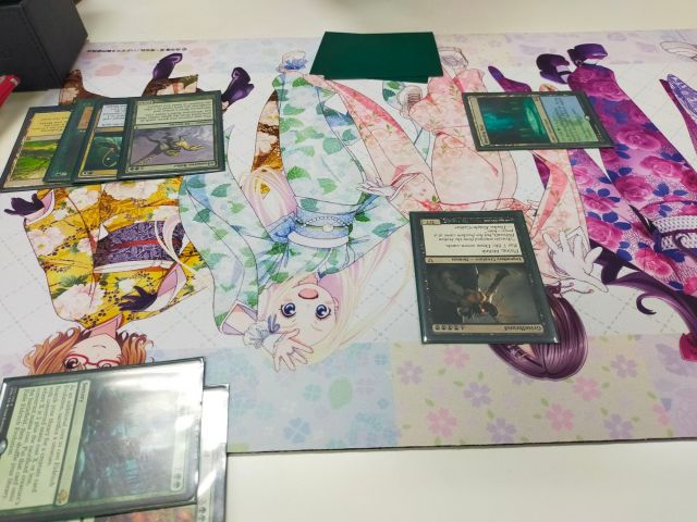土地はあったので、甲鱗のワームを引ければ7/6飛行速攻プロテクション黒で綺麗に勝てたのだが、グダグダになるのも良くないのでこれでいい。