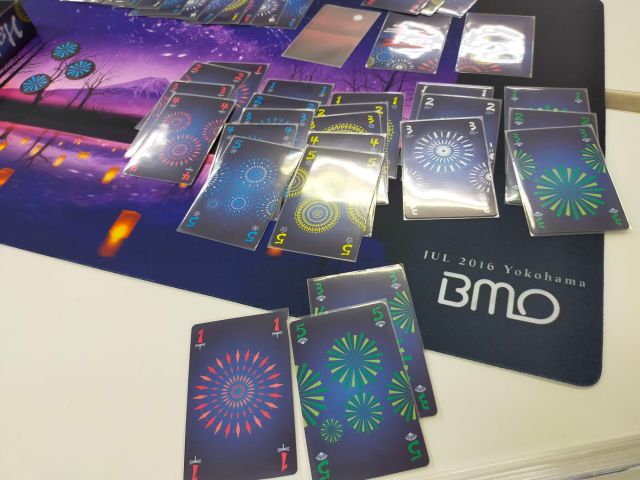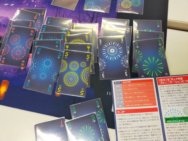 自分の手札は分からず、全員で協力して花火の完成を目指してゆく。