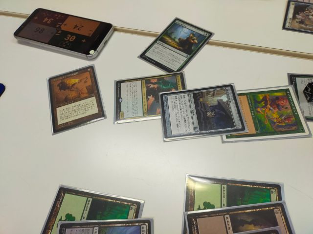 献身のドルイドを出したらヘイトが上がったが、すぐに-1/-1カウンターを乗せて、1マナのマナクリ出して、変なコンボでは無いですよアピールをした(有効だったかは不明)。