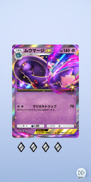 メインアカウントのギャラドスexデッキがコイツにやられた。こんらん強い(こんらんはコイントスに負けると攻撃を失敗する。逃げれば治る)。