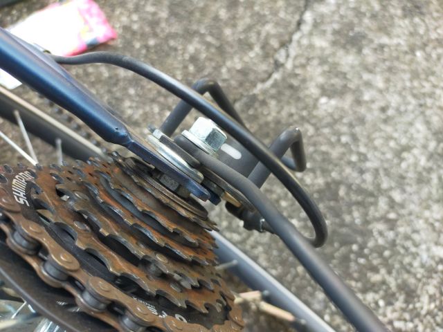 まず後輪のナットを外す前に写真を撮っておく。