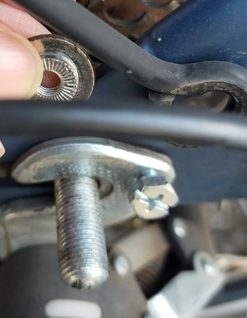 左側にブレーキワイヤーを固定していたネジがある。あちらは8mmだった。